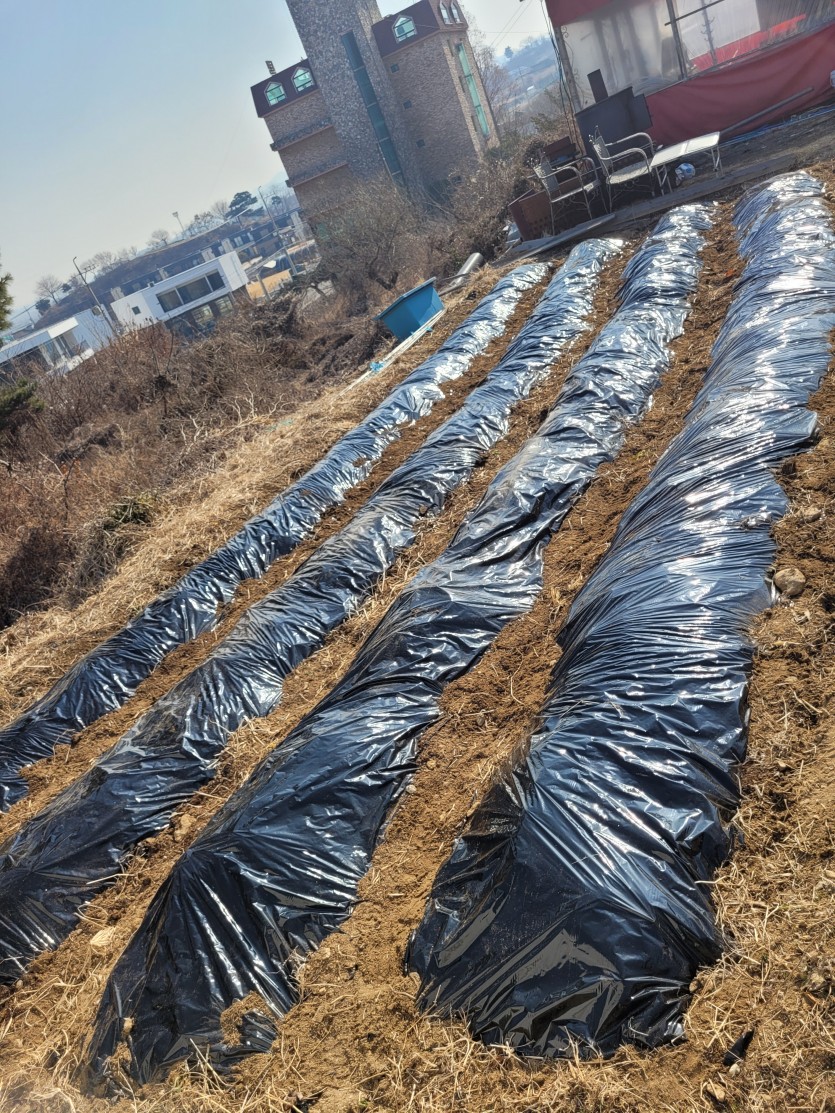 어제는 청소를 마친 후 펜션텃밭에 양파모종과 열무를 심었습니다.